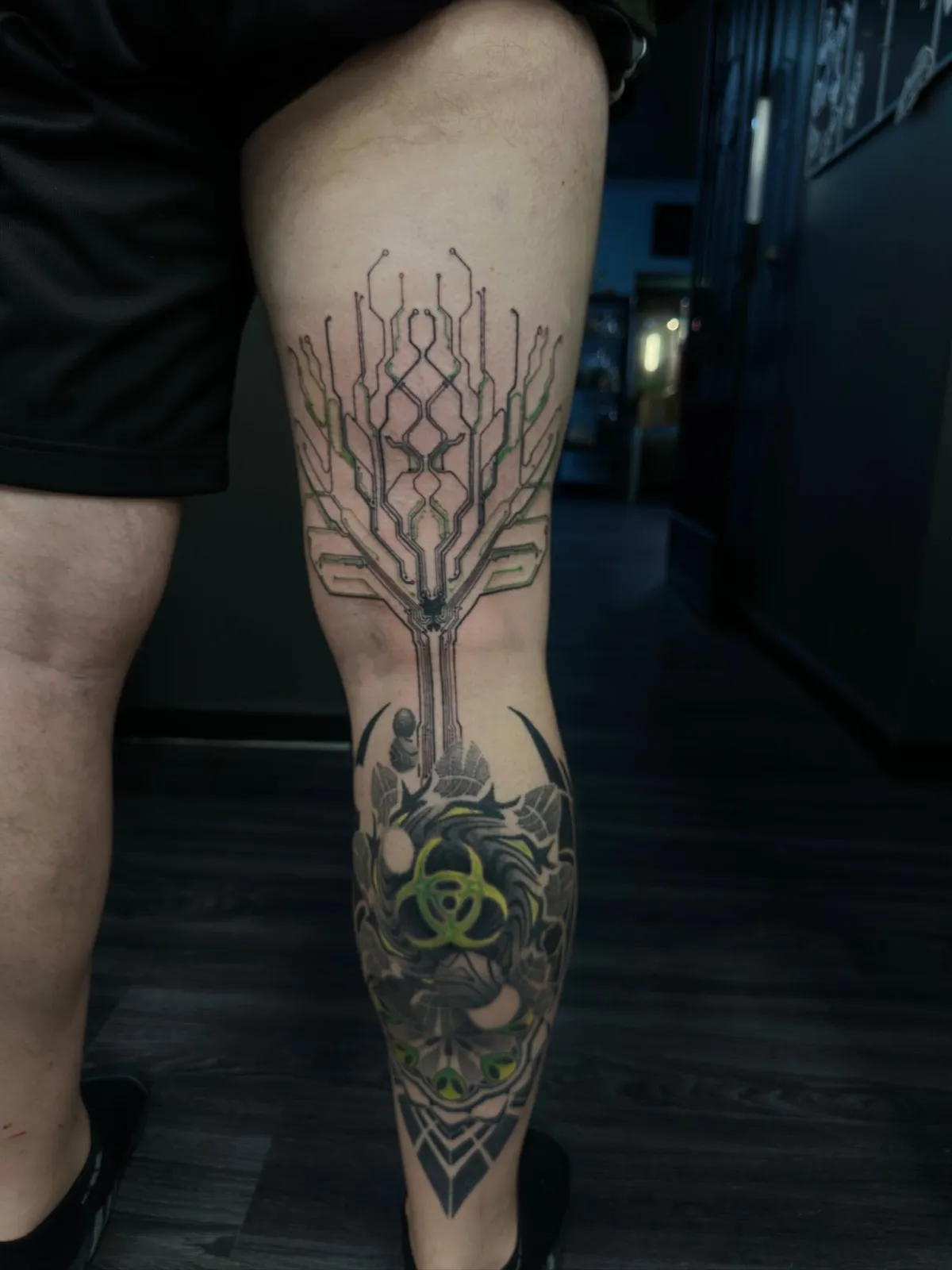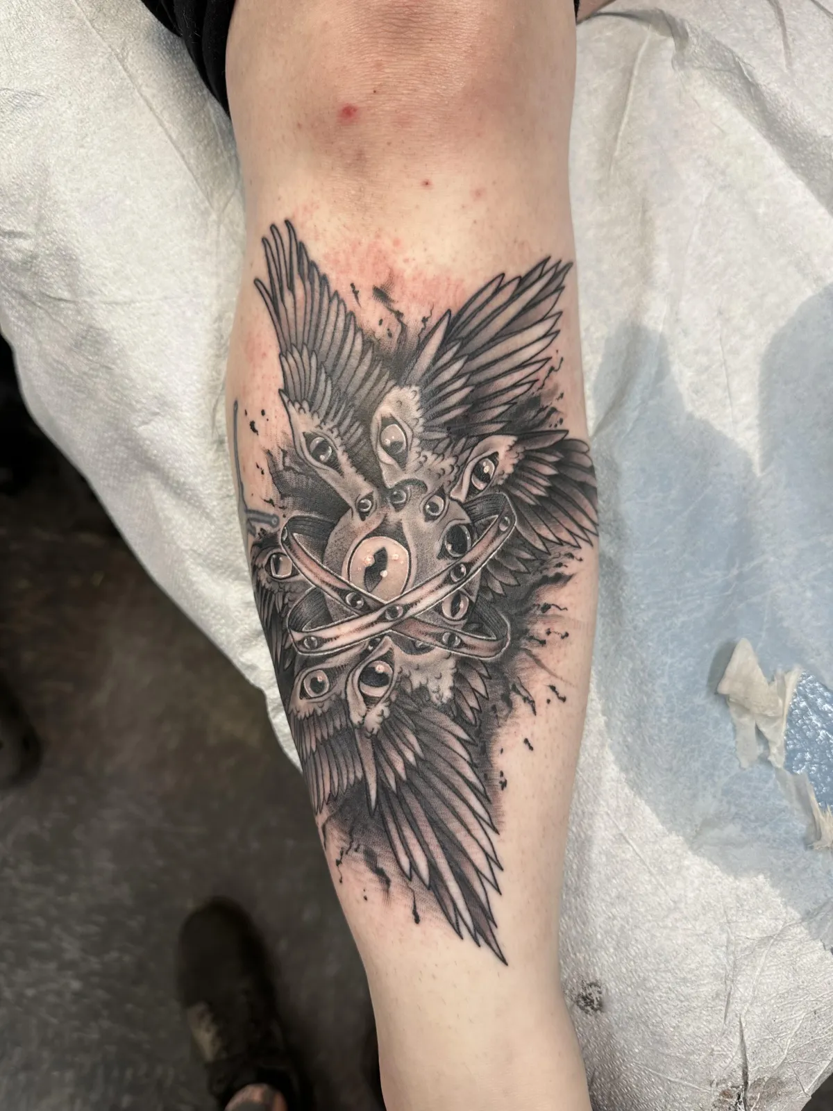 Wes (He/Him) has been tattooing since 2012, he has been tattooing in Portland, Or since 2016. He is proficient in a variety of different tattoo styles ranging from neo traditional to geometric, but he heavily prefers working in Black and Grey doing lots of freehand and Geometric designs. Please click any of the green buttons on this page to contact him with your concepts to see if we can make your tattoo idea a permanent reality.